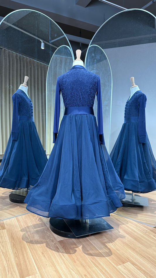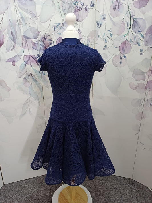 113J Navy Blue Lace Latin Dress , Shoes Competition Number Wallet & Decorative Pins & Matching Hair Flower ❤️Everything included❤️
