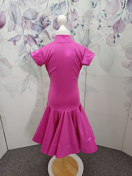 112J Pink Metallic Latin Dress , Shoes Competition Number Wallet & Decorative Pins & Matching Hair Flower ❤️Everything included❤️