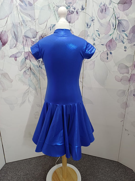 114J Royal Blue Metallic Latin Dress , Shoes Competition Number Wallet & Decorative Pins & Matching Hair Flower ❤️Everything included❤️