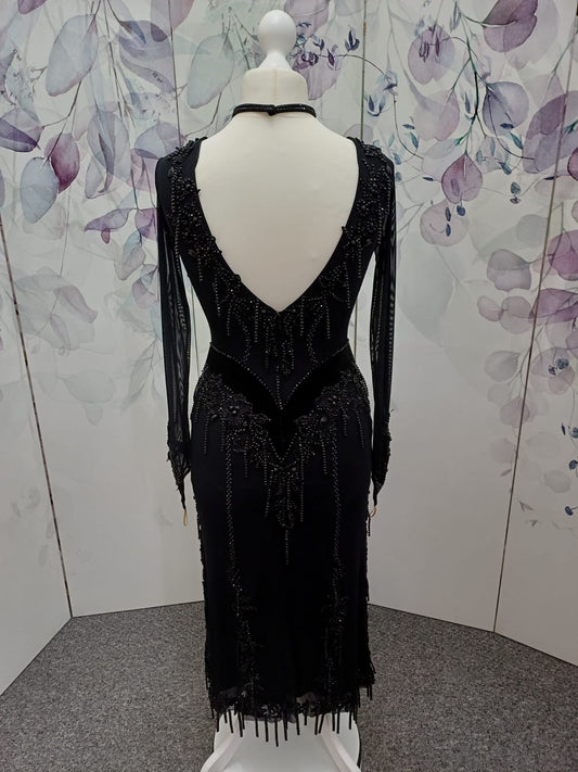 50L Black mesh on Lycra Competition Latin Dance Dress. Stunning beading & stone details throughout. ❤️Showroom Appointments Available❤️