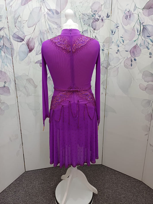 66L Plum Competition Latin Dance Dress. Heavily stoned with AB, Amethyst & Amethyst AB with mirrors. Sash detail to front, back & hip. Could be removed. High back to wear own Bra. ❤️Showroom Appointments Available❤️