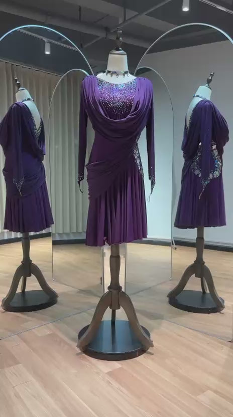 62L Plum Competition Latin Dance Dress. Mega full skirt for maximum movement. Stoned in AB & Amethyst. High back for wearing own Bra option. ❤️Showroom Appointments Available❤️