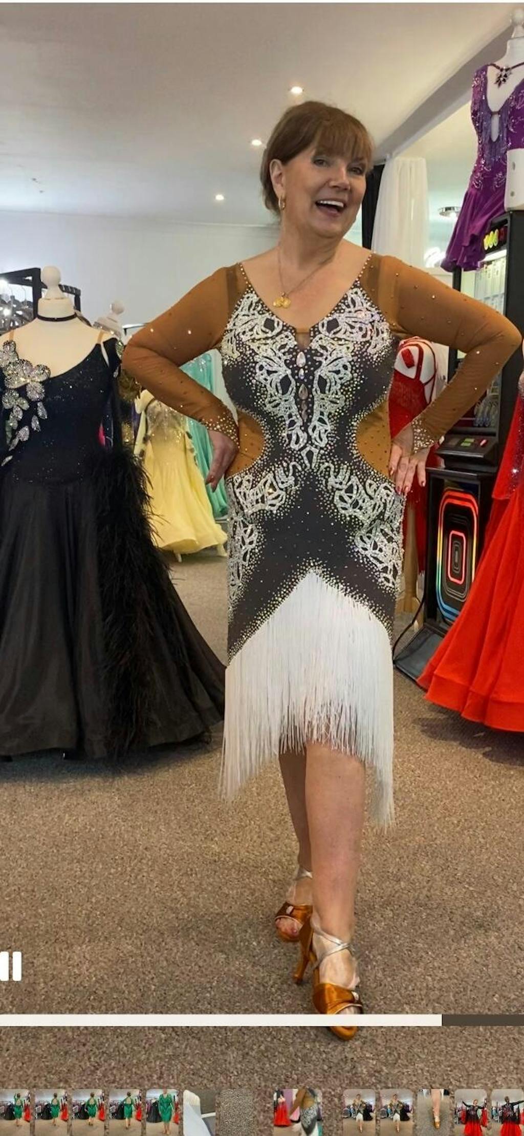 I bought a new Latin dress from Tracey and it was such a fun experience! There were so many to try on and Tracey was great at suggesting other styles that worked. I ended up finding my perfect dress and it looked wonderful on the floor at Blackpool 😊
