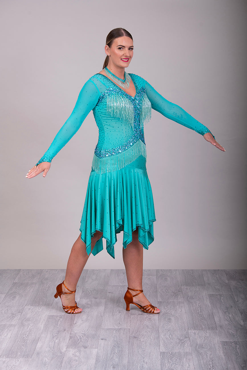 All TWDance garments will have additional stretch (due to the dance fabrics used in construction) which will allow them to accommodate bigger measurements than the sizing chart may suggest. With this in mind, the Large+ dresses are often made with super stretchy fabrics which means that Tracey can offer dresses to the most curvy of dancers. Where a garment is structured, as in many of my Latin dresses, there is less potential for stretch. This may be a hard thing for you to judge yourself so please get in touch with details of the dresses you are interested in and your measurements and Tracey will assist you to find a dress you love with the perfect fit.