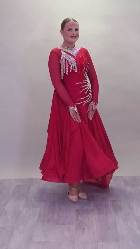 I saw a beautiful dress posted by Tracey on a Facebook group page where I was searching for a ballgown. The dress was stunning and I started a messenger chat with Tracey who was very gracious but while chatting with her that dress was sold. Tracey offered to custom make a similar dress to my specifications so I took her up on it. I received the dress that was shipped to me in the US and as I opened the garment bag it was in I saw my new sparkly red dress, I cried to have received such a beautiful dress made perfectly for me. I twirled in it and embraced the joy I felt at wearing a fantastic ballgown since my last competition over 30 years ago 🥹. Thank you, Tracey for making this dreamy dress for me and being so professional throughout the process.