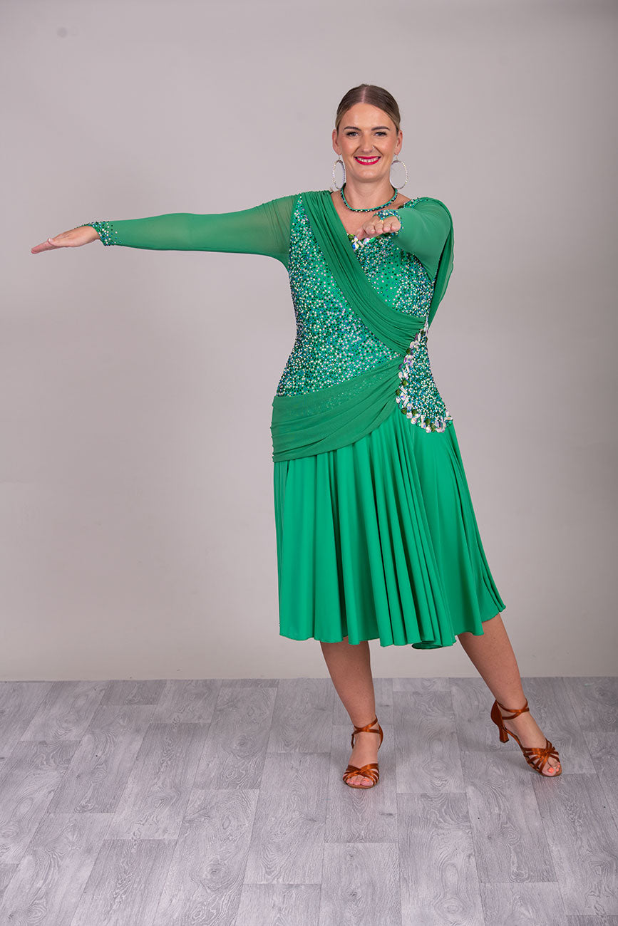 All TWDance garments will have additional stretch (due to the dance fabrics used in construction) which will allow them to accommodate bigger measurements than the sizing chart may suggest. With this in mind, the Large+ dresses are often made with super stretchy fabrics which means that Tracey can offer dresses to the most curvy of dancers. Where a garment is structured, as in many of my Latin dresses, there is less potential for stretch. This may be a hard thing for you to judge yourself so please get in touch with details of the dresses you are interested in and your measurements and Tracey will assist you to find a dress you love with the perfect fit.
