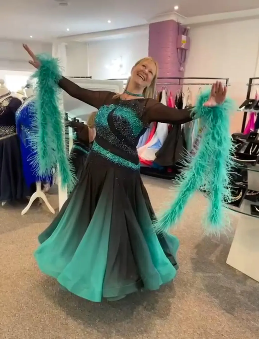 I came up from South London to visit the showroom and what an Aladdin's cave it was and more than worth the visit. I was looking for a new ballroom dress and I was able to try on a wealth of dresses in fantastic colours and styles. Tracey offered great advice, as well as cups of tea. The dress I chose needed a slight tweak which was done on the spot. I felt comfortable at all times and valued as a customer. I am absolutely thrilled with my purchase and can't wait to wear it on the dancefloor. Thank you.