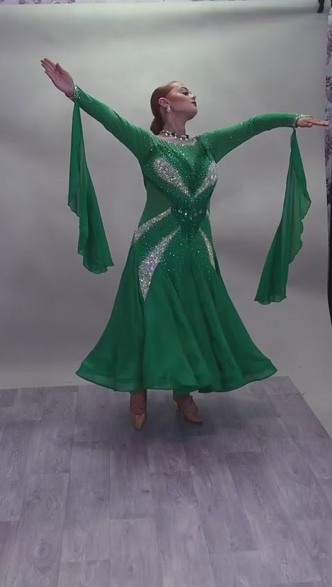 30B “TWD PETITE” Emerald Green Competition Ballroom Dance Dress. Stoned in AB & Emerald. Very flattering design throughout