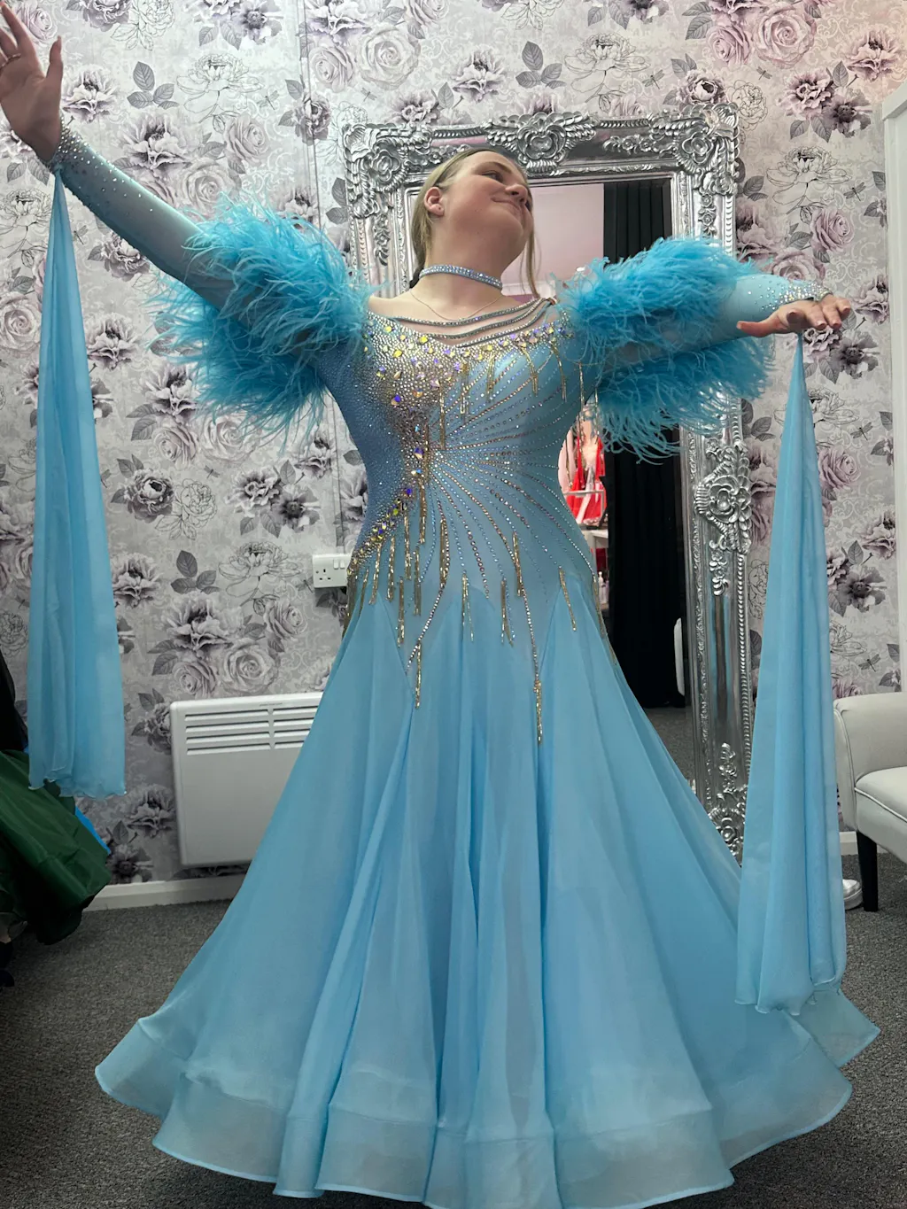 Today, she stocks up to 350 dresses and still gets a thrill from designing and seeing her creations on the competition dance floors of the world.