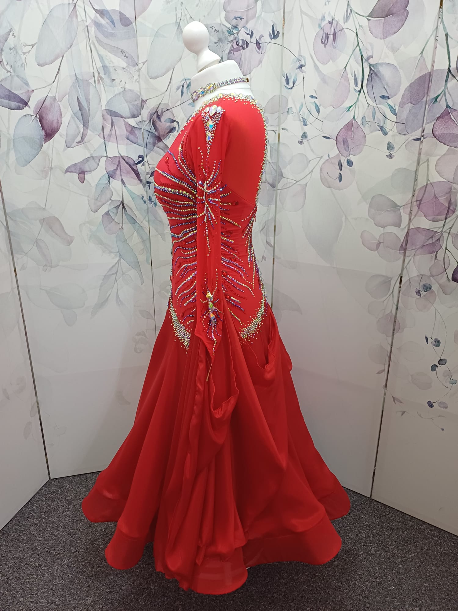 59B TWD PETITE Beautiful Red Competition Ballroom/Sequence Dance Dress. Stoning in AB, Light Siam & Jet. ❤️Showroom Appointments Available❤️