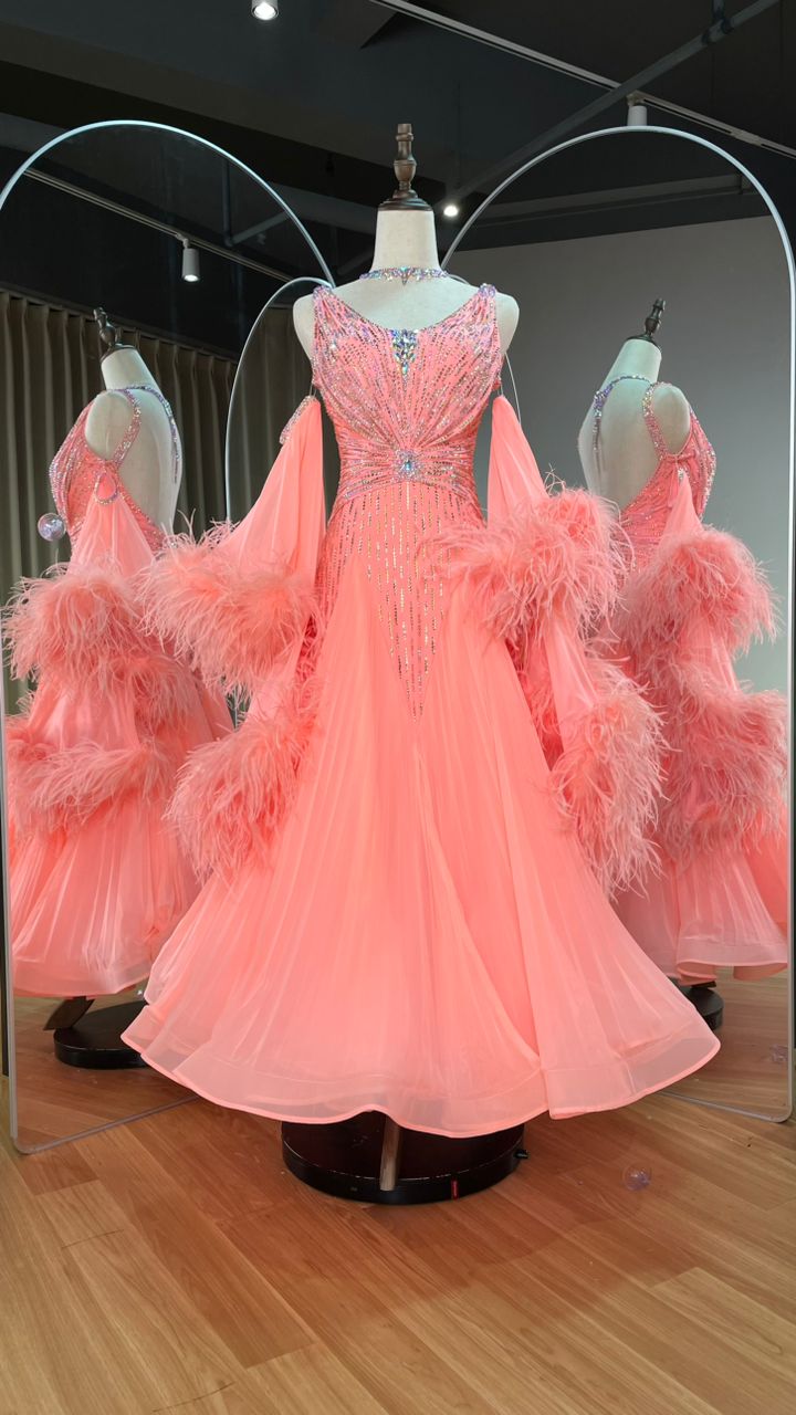 I saw a beautiful dress posted by Tracey on a Facebook group page where I was searching for a ballgown. The dress was stunning and I started a messenger chat with Tracey who was very gracious but while chatting with her that dress was sold. Tracey offered to custom make a similar dress to my specifications so I took her up on it. I received the dress that was shipped to me in the US and as I opened the garment bag it was in I saw my new sparkly red dress, I cried to have received such a beautiful dress made perfectly for me. I twirled in it and embraced the joy I felt at wearing a fantastic ballgown since my last competition over 30 years ago 🥹. Thank you, Tracey for making this dreamy dress for me and being so professional throughout the process.