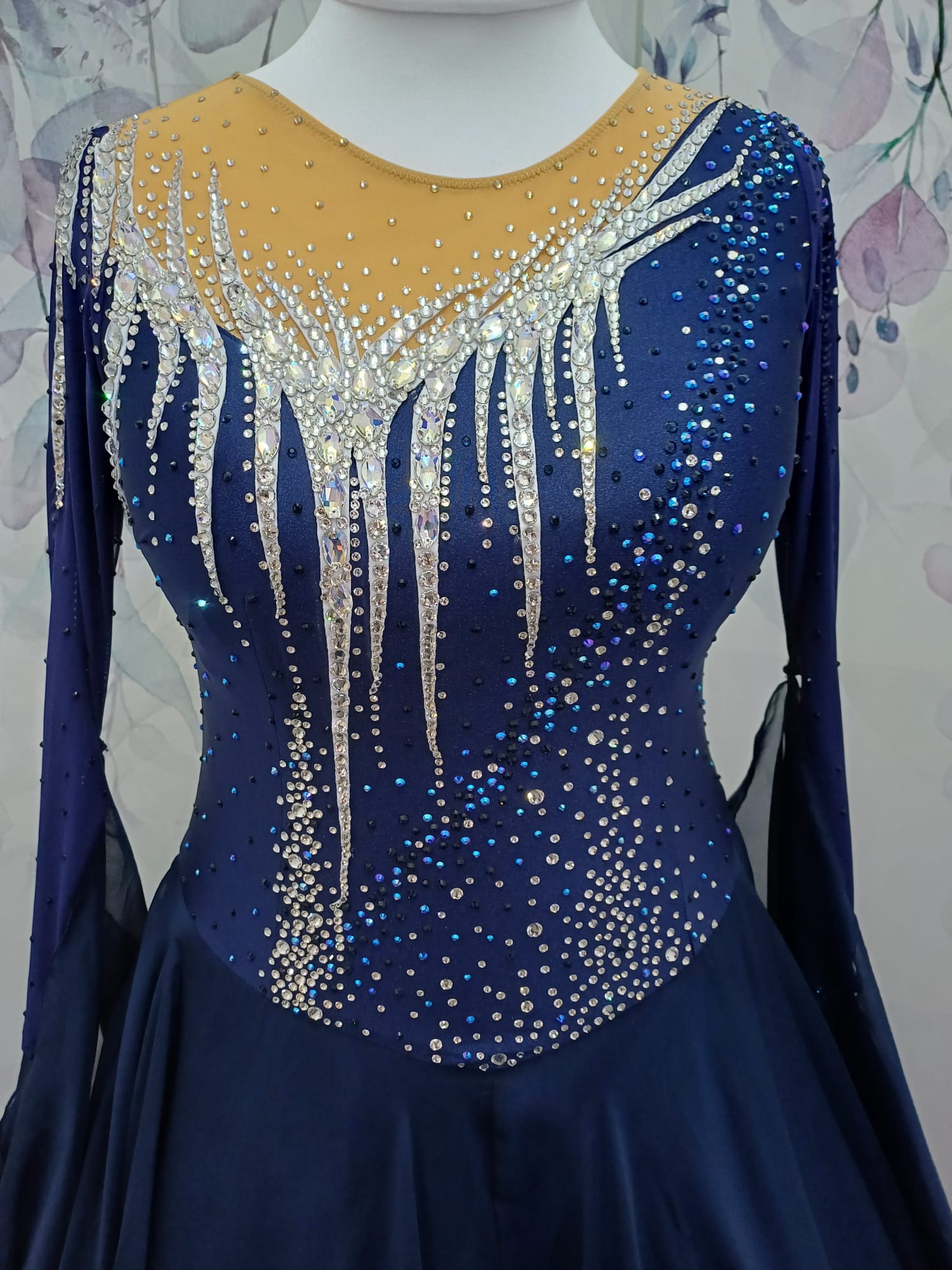 All TWDance garments will have additional stretch (due to the dance fabrics used in construction) which will allow them to accommodate bigger measurements than the sizing chart may suggest. With this in mind, the Large+ dresses are often made with super stretchy fabrics which means that Tracey can offer dresses to the most curvy of dancers. Where a garment is structured, as in many of my Latin dresses, there is less potential for stretch. This may be a hard thing for you to judge yourself so please get in touch with details of the dresses you are interested in and your measurements and Tracey will assist you to find a dress you love with the perfect fit.