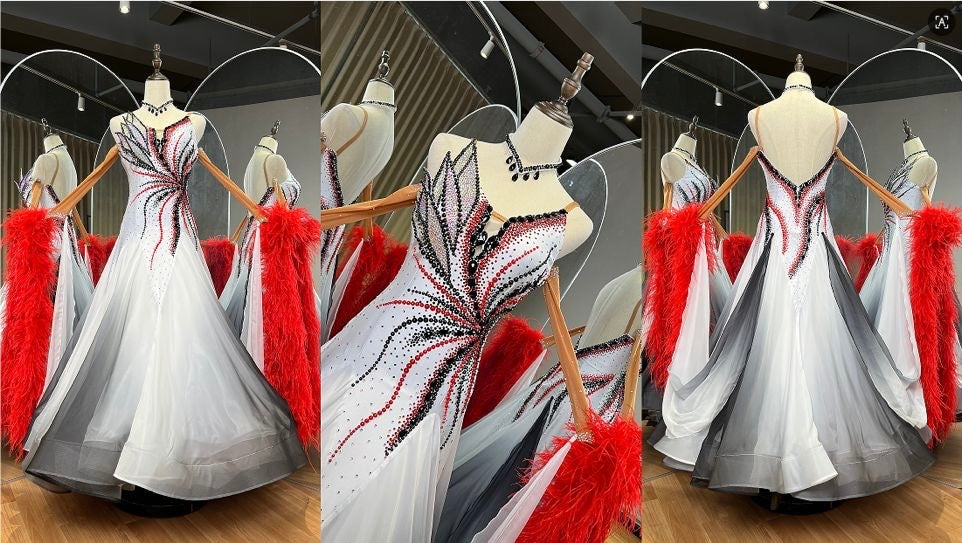 Today, she stocks up to 350 dresses and still gets a thrill from designing and seeing her creations on the competition dance floors of the world.