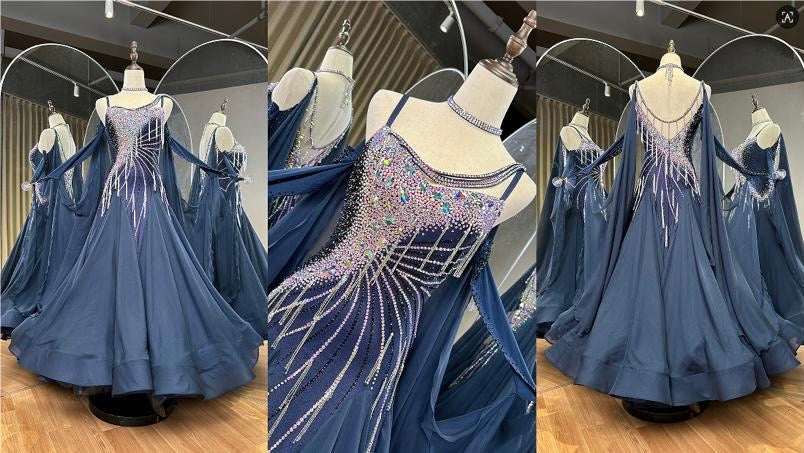 Tracey does beautiful work and is extremely easy to work with. I initially purchased a rhythm dress from her online shop, and she took the time to put the dress on a mannequin with my measurements in order to make sure it would fit. It fit perfectly! I loved it so much that I purchased a made-to-measure American Smooth dress. Most of her styles are standard gowns, but Tracey was able to make an American Smooth just as well. Her suggestions for colors and stones were helpful, and she completed the dress well in advance of my competition. Thank you Tracey for the beautiful dresses.