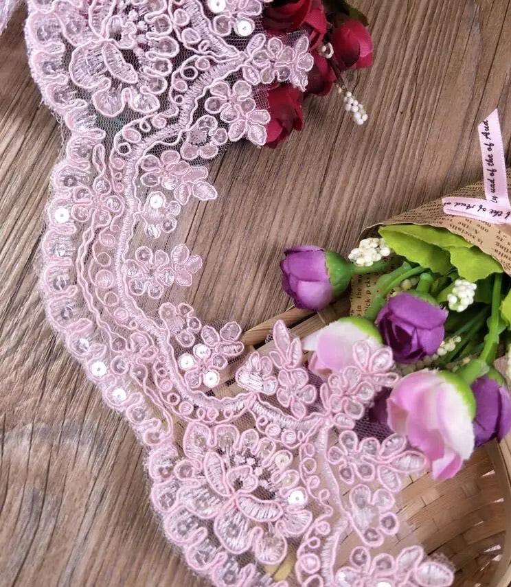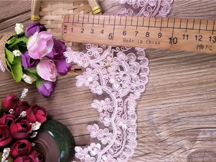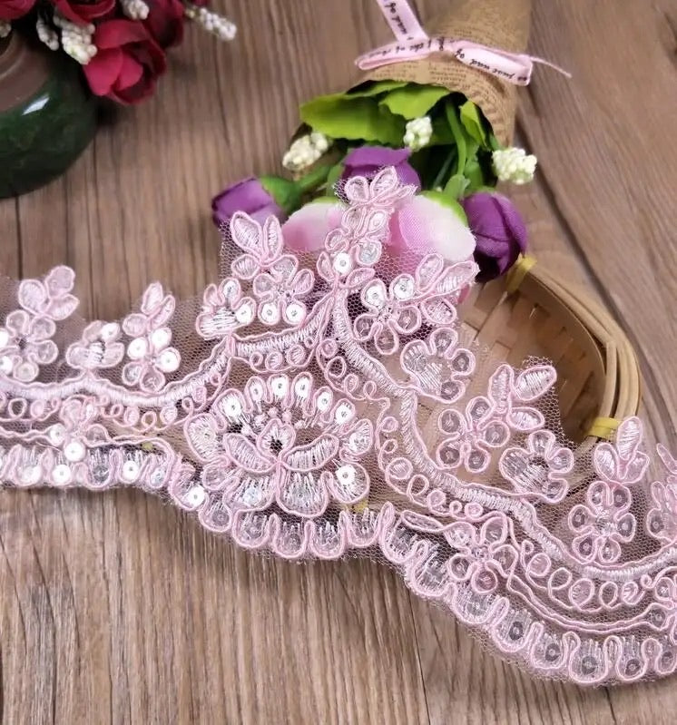 Pink Sequinned Venice Corded Pink Flower Applique / Matching Trim Suitable for all dance projects and more