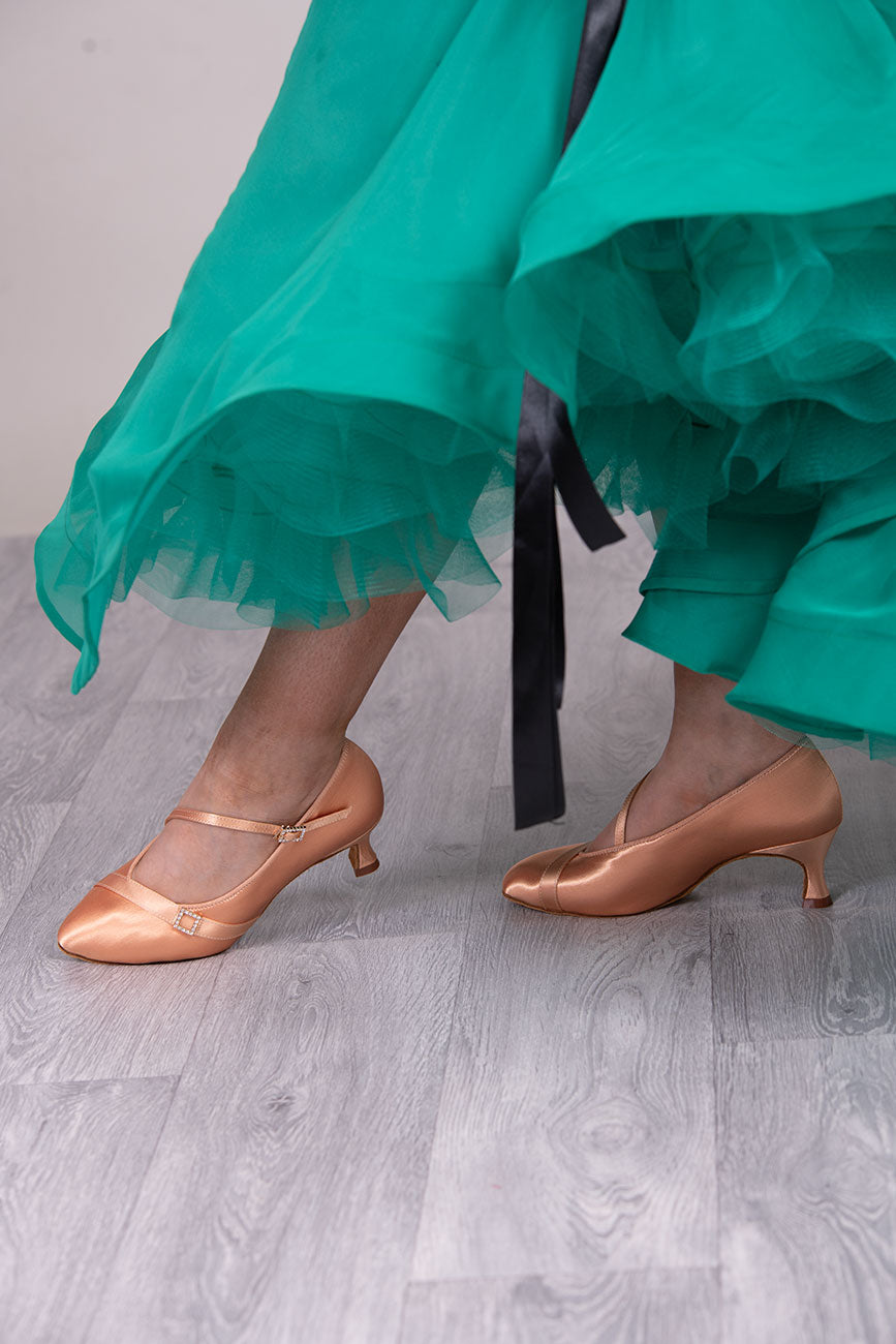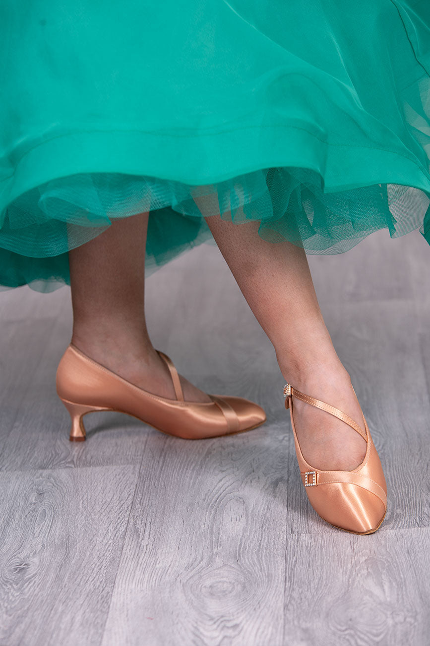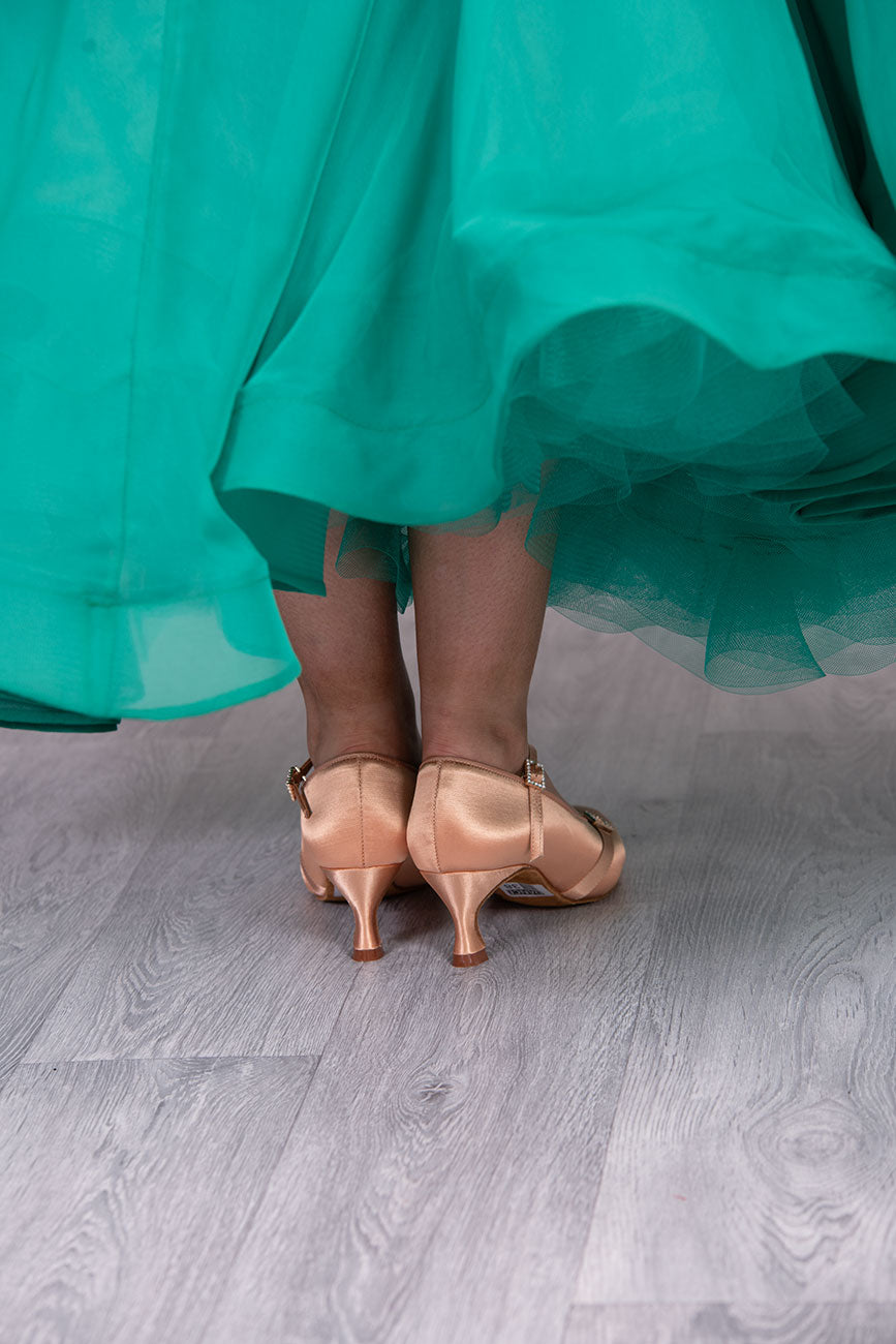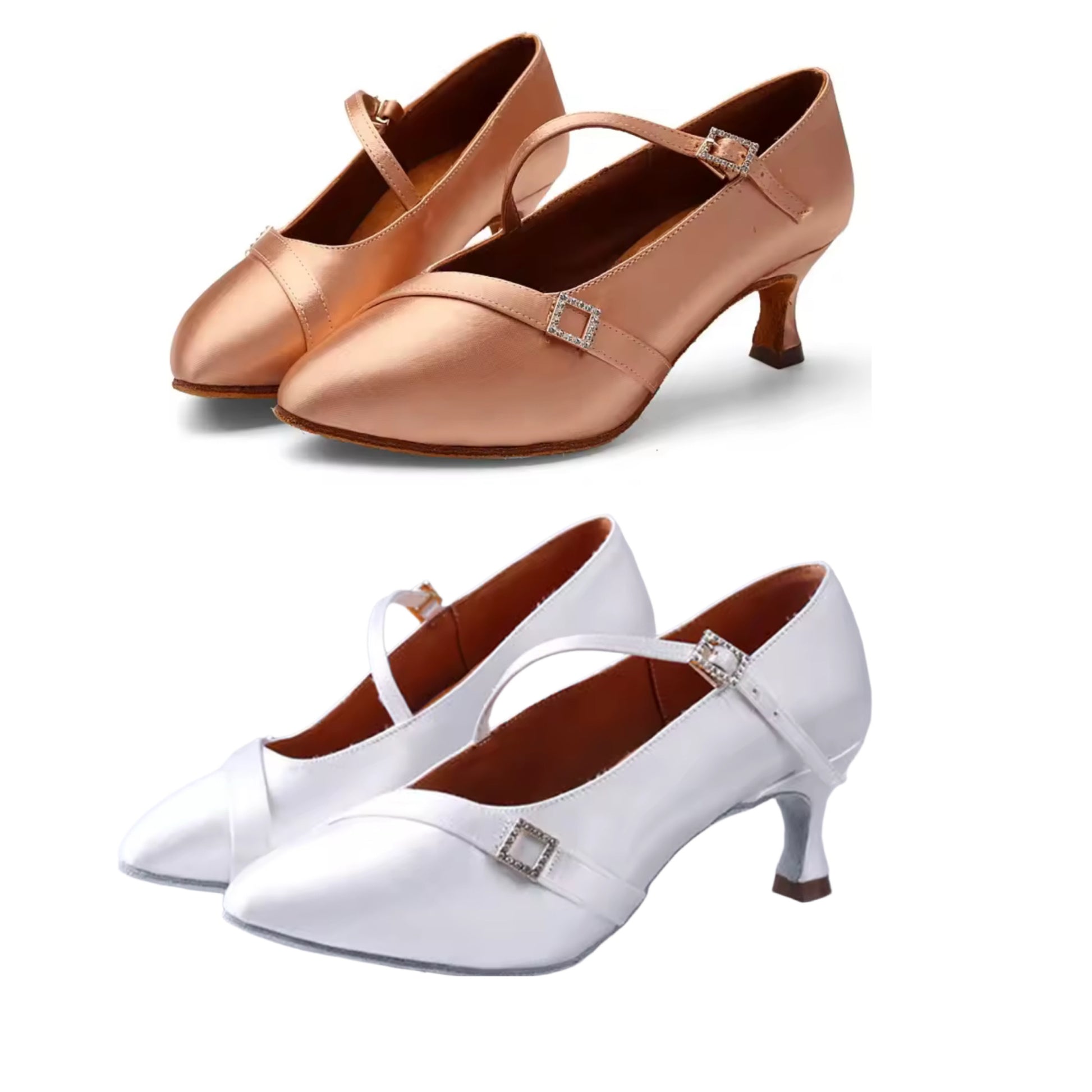 TWD “LULAH” Ballroom Shoes. White Satin Colour & Skin Tone Colour with  5.5cm Heel