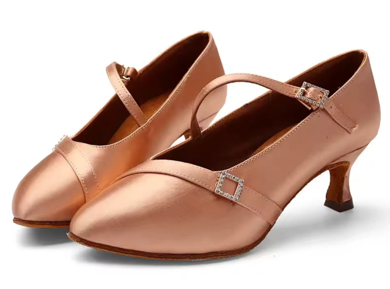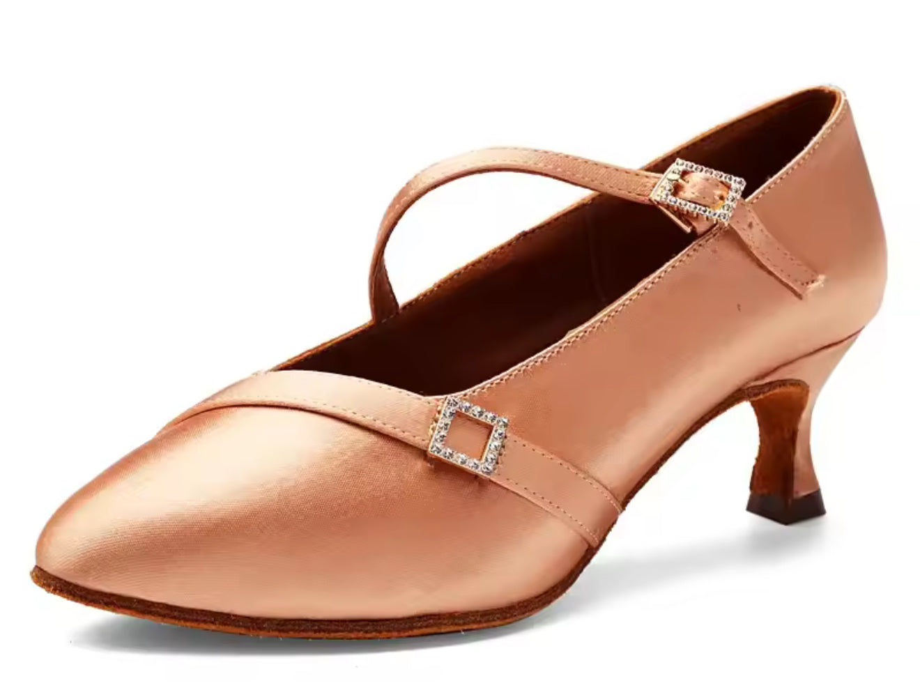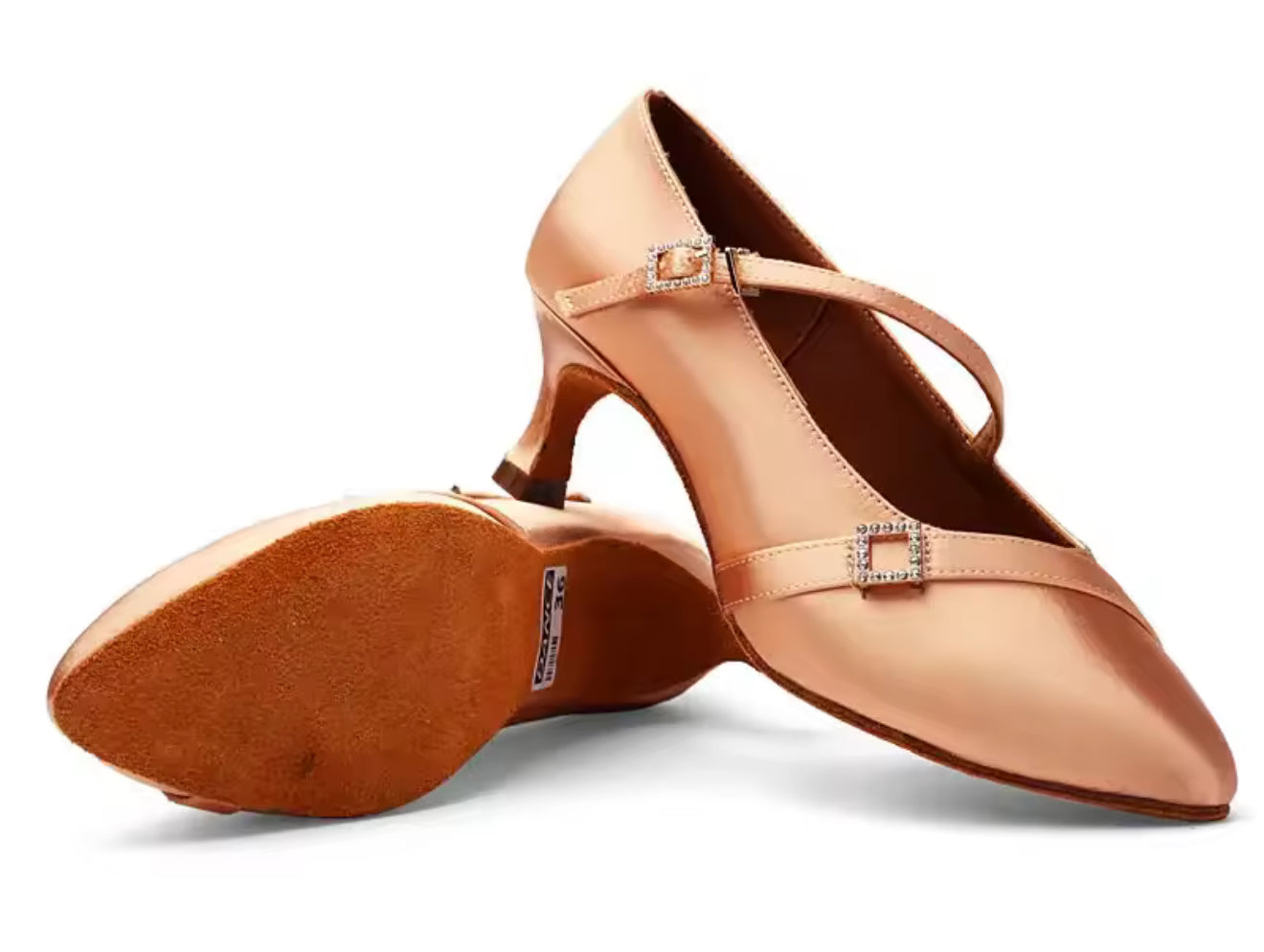 (11) TWD “LULAH” Ballroom Shoes. Flesh Skin Satin with 5.5cm Heel Diamanté Strap & Buckle. Shoes come Boxed Includes a “Black Shoe Bag” pair of plastic feet protectors to try Shoes on for Size, Fit & Comfort.