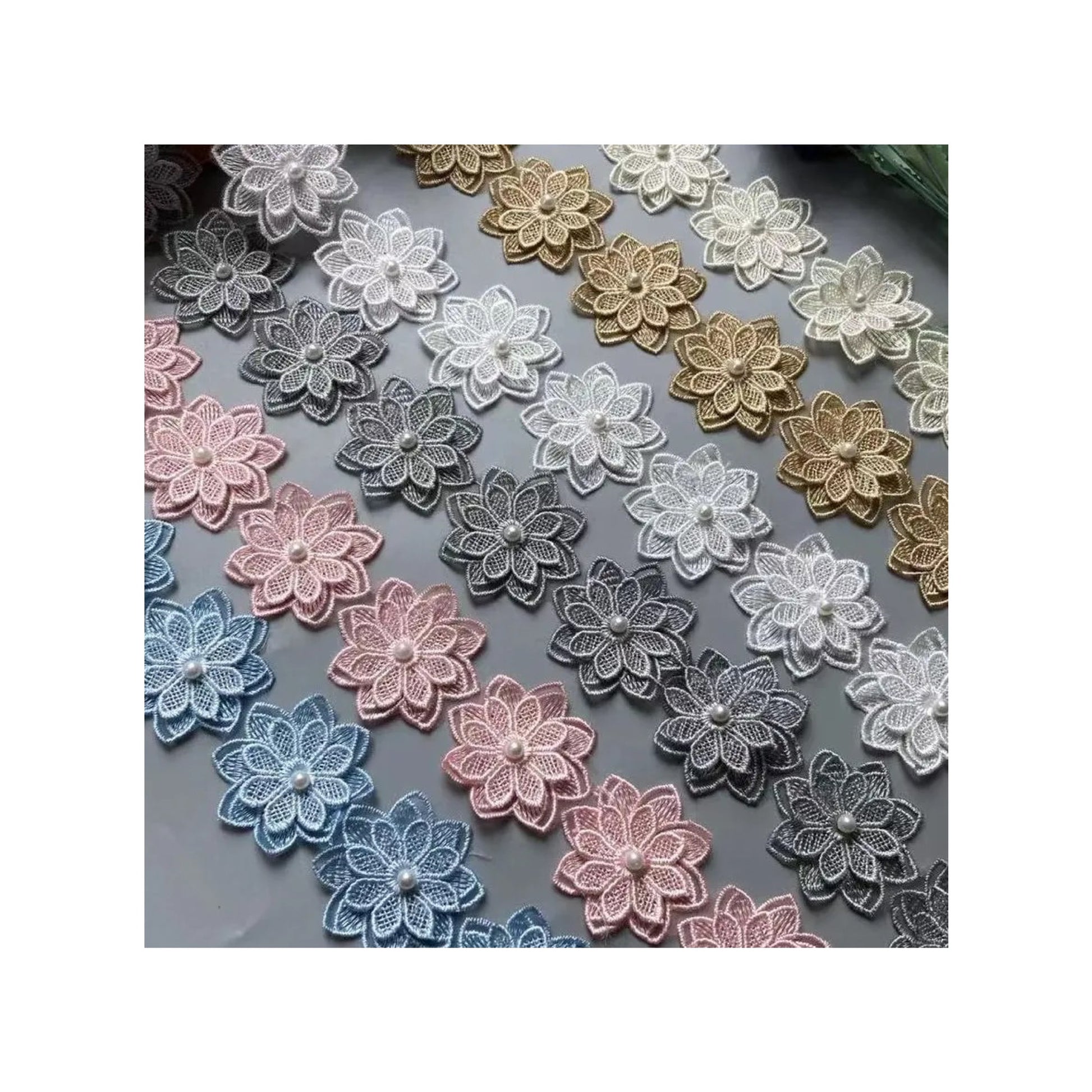 Individual Embroidered Pearl Flower Trim Applique Suitable for all dance projects and more