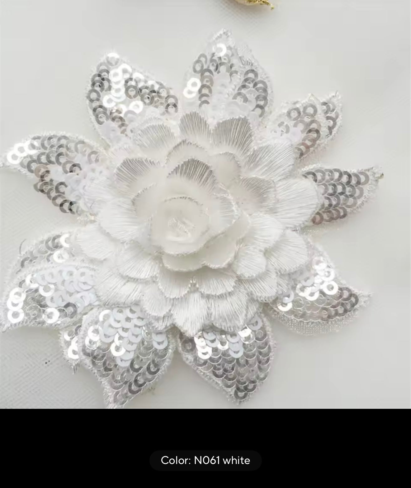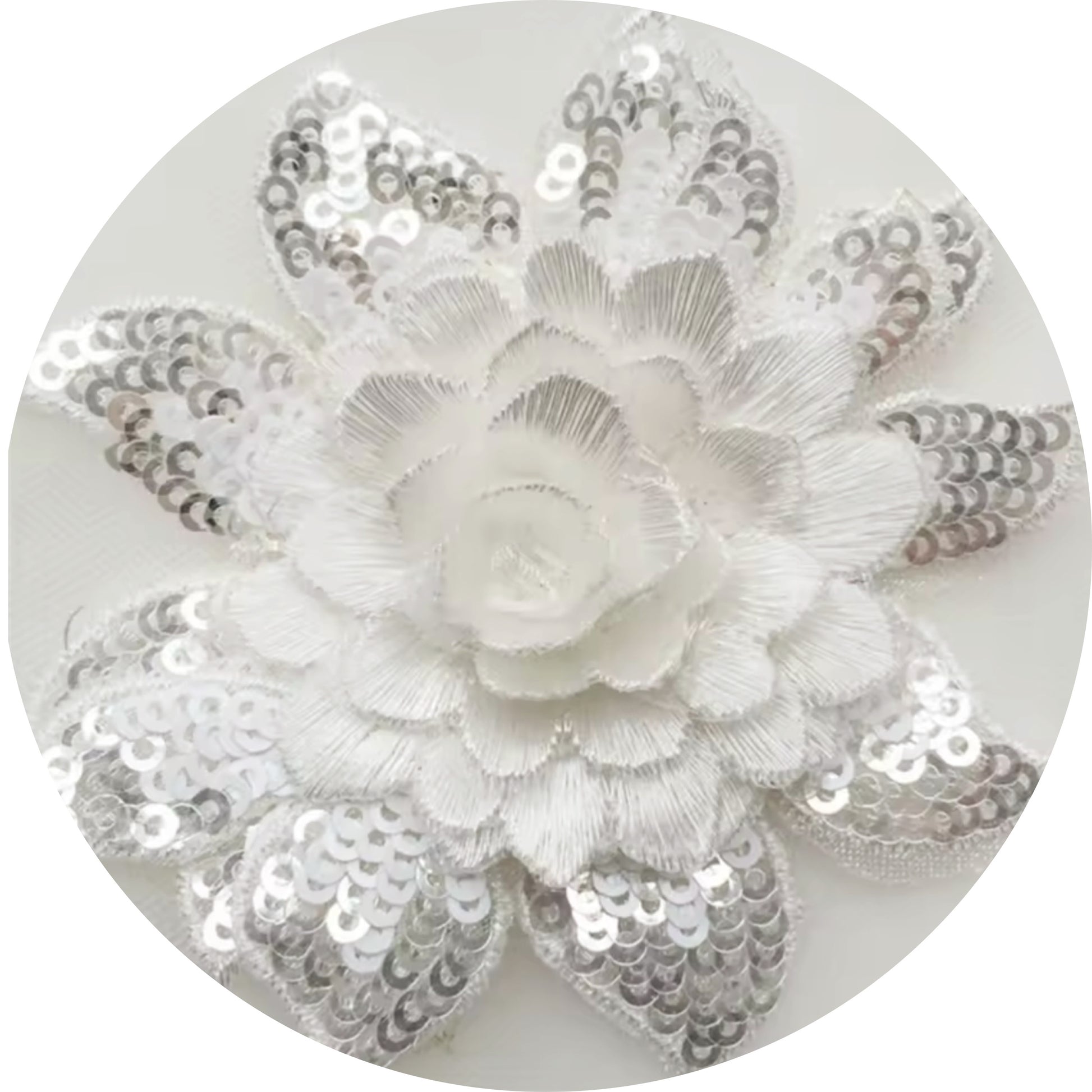 M134 Montana 3D Sew On Flowers, Outer Petals are sequinned. Perfect for adding stones. 8cm wide. Available in 8 Colours