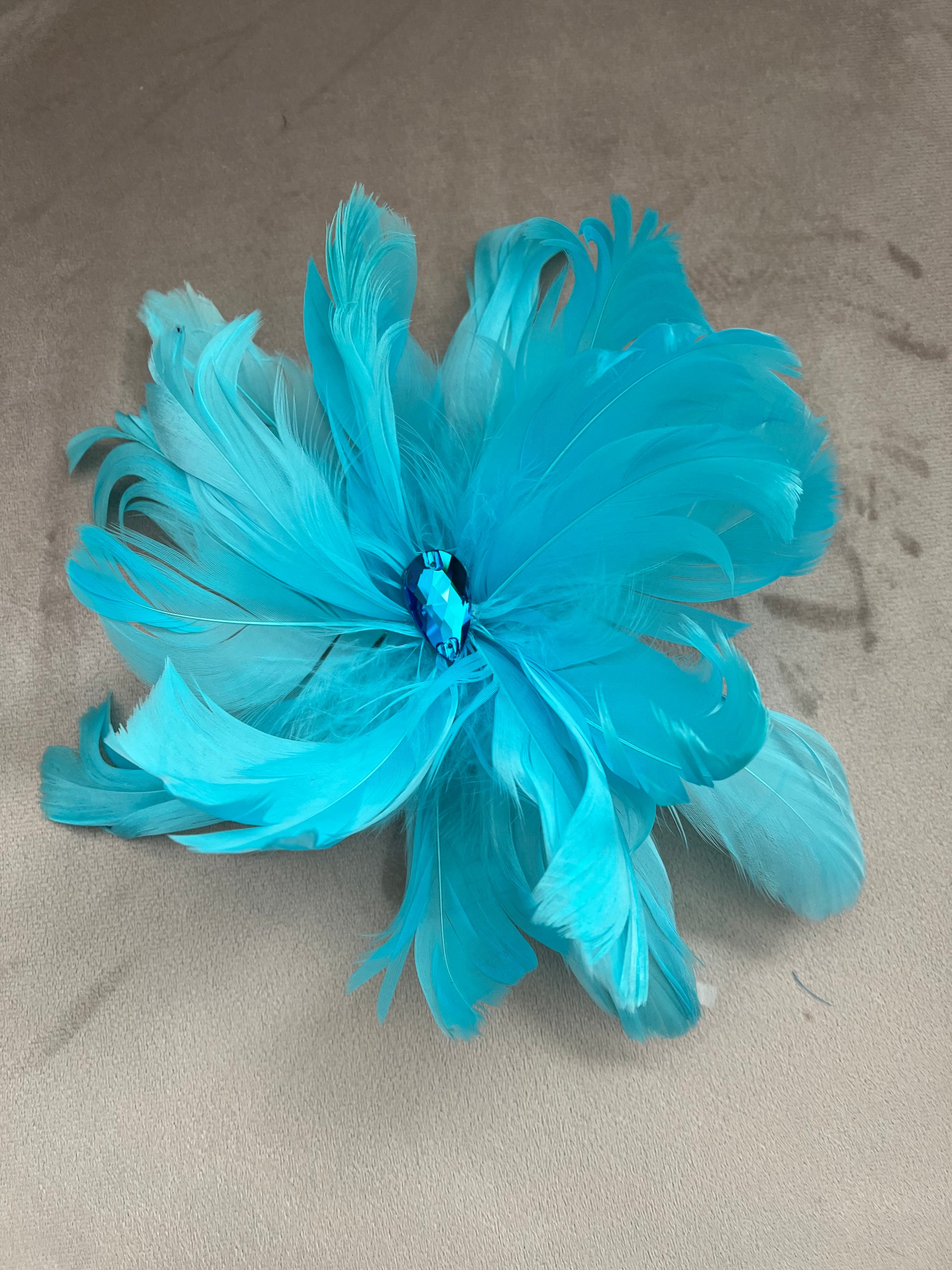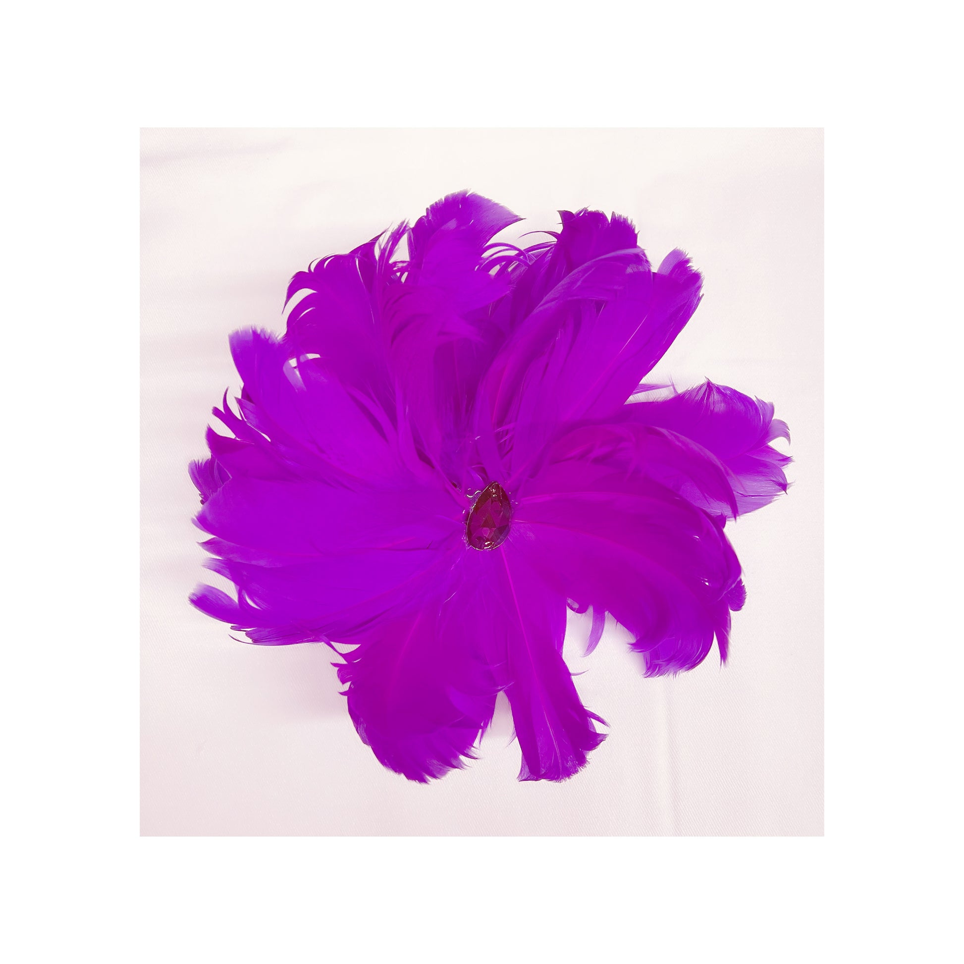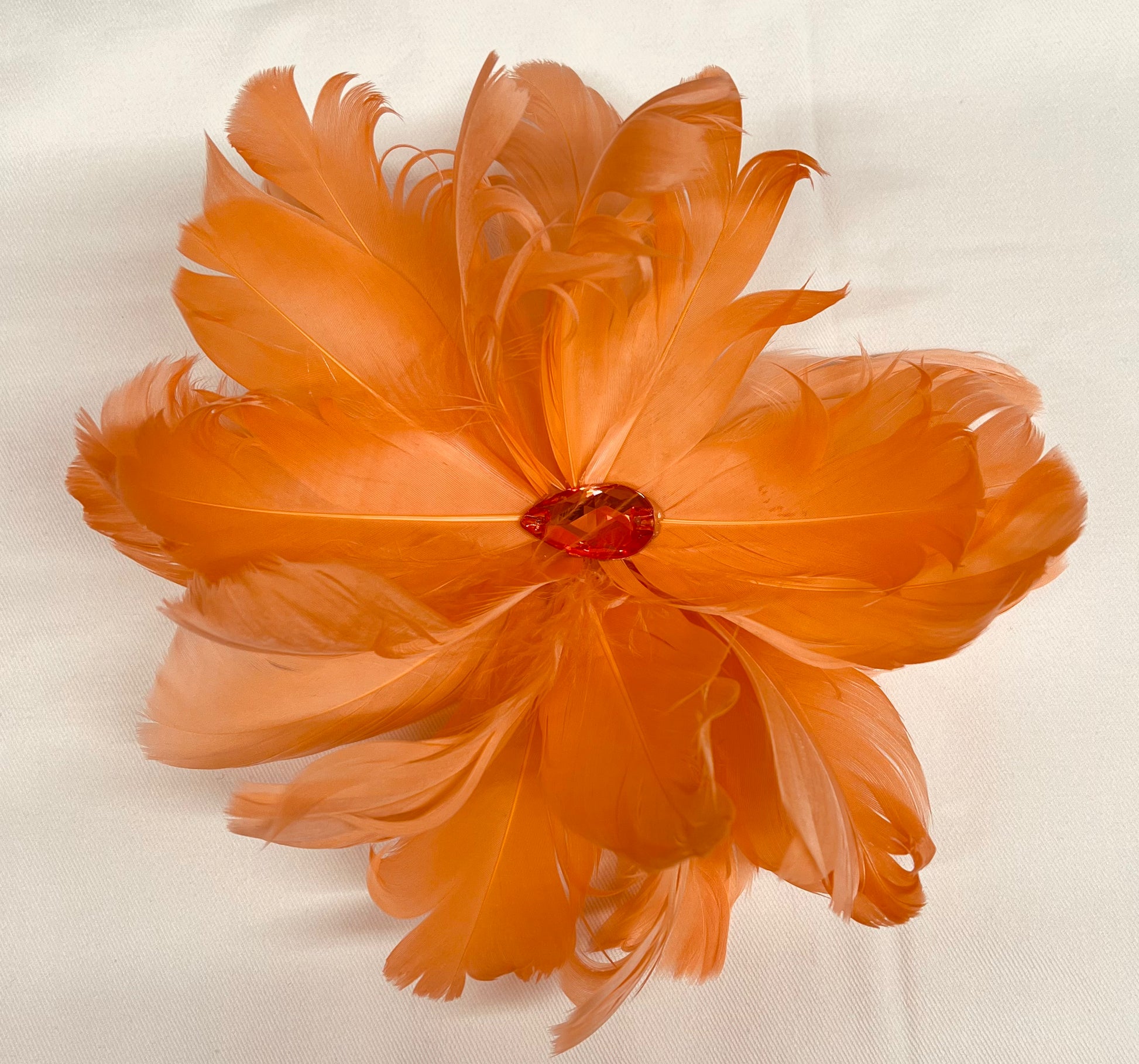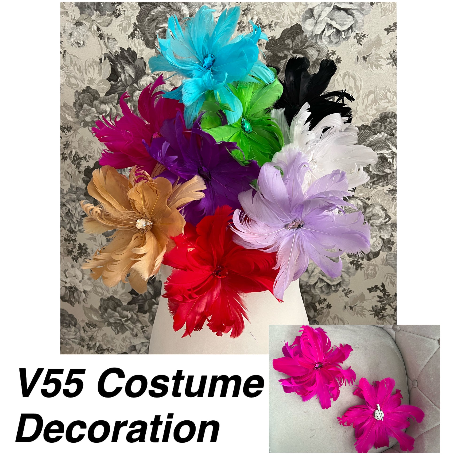 V55 8”x8” Feather Decoration. Pin & clip option on the back. Instant decoration to any Leotard/Costume. 17x28mm top quality pear stone in the centre of the feathers.