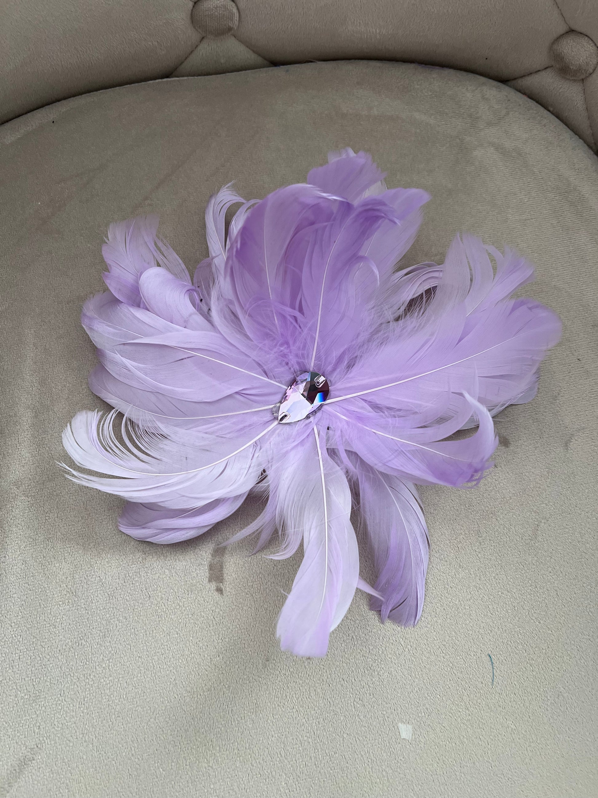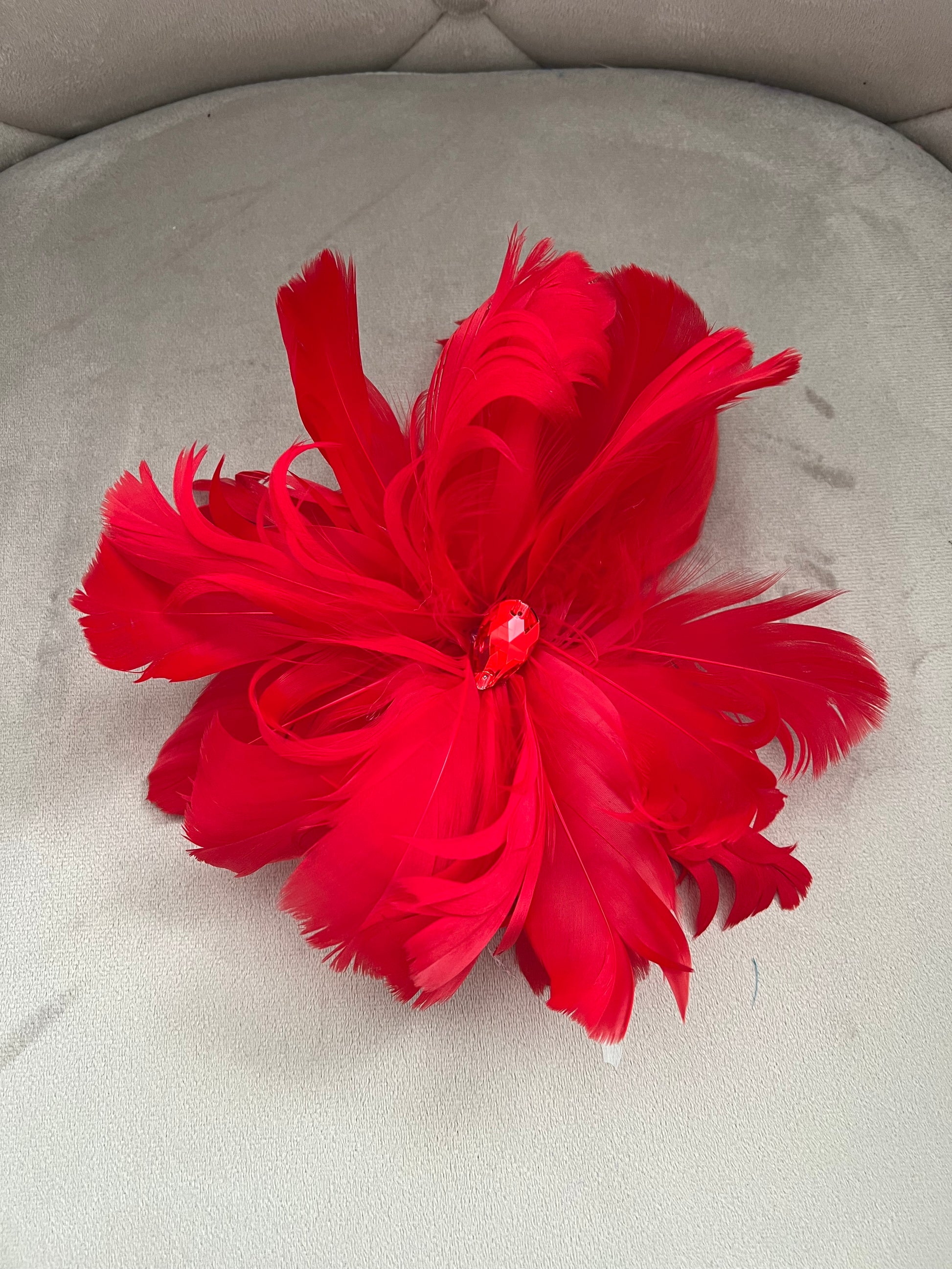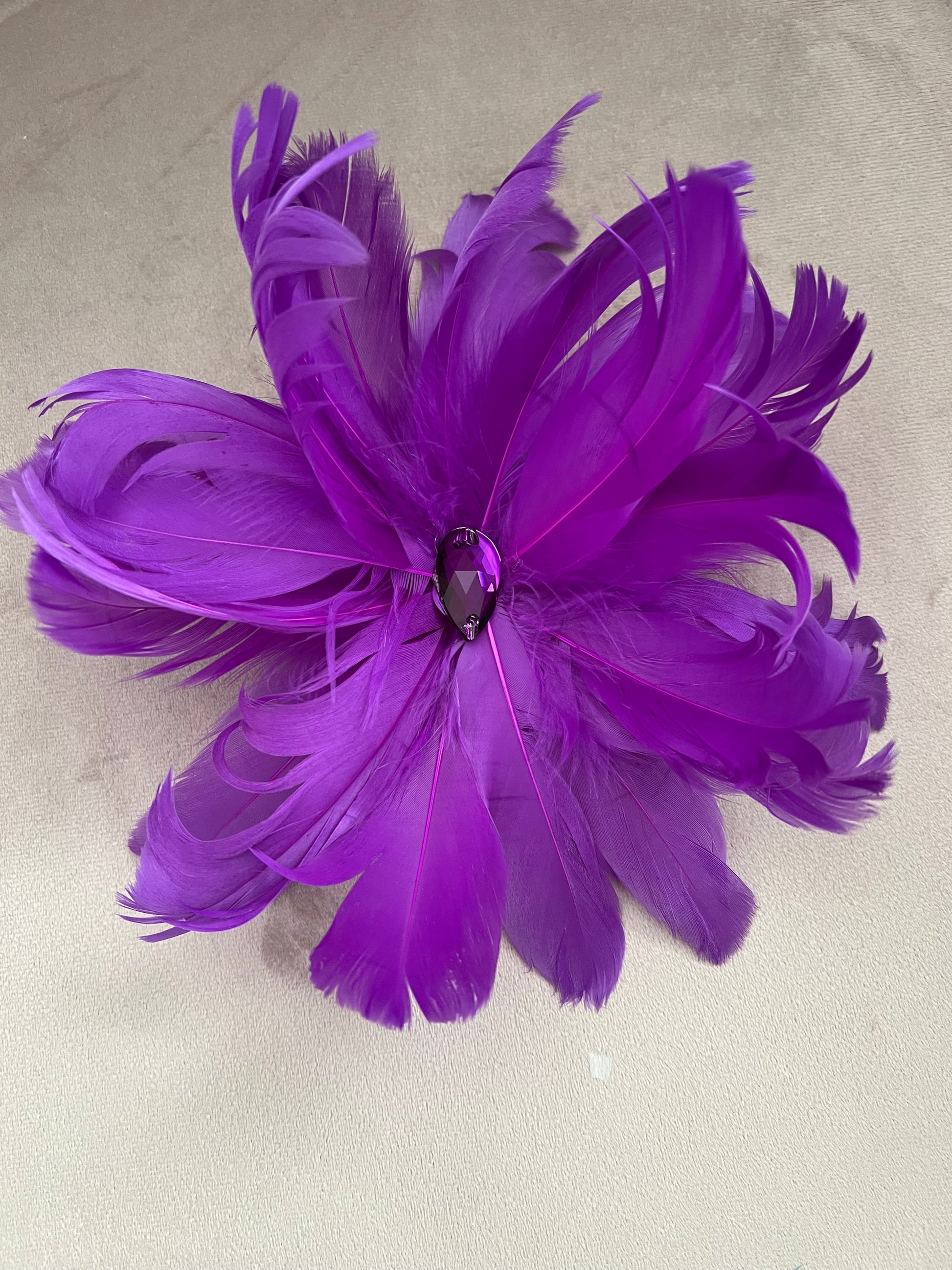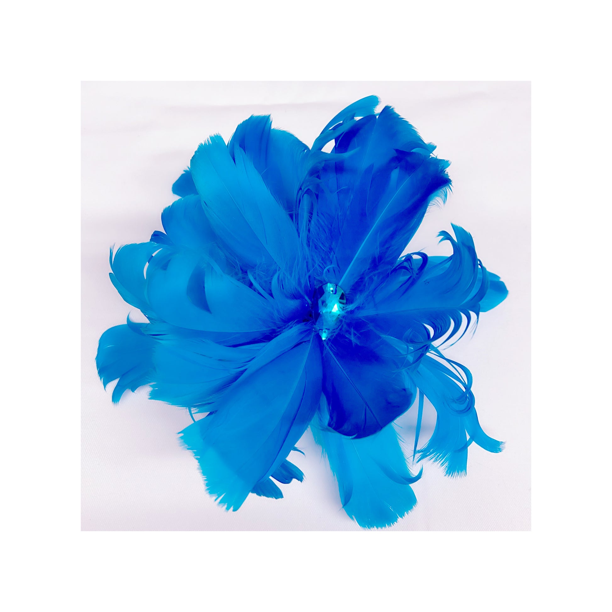V55 8”x8” Feather Decoration. Pin & clip option on the back. Instant decoration to any Leotard/Costume. 17x28mm top quality pear stone in the centre of the feathers.