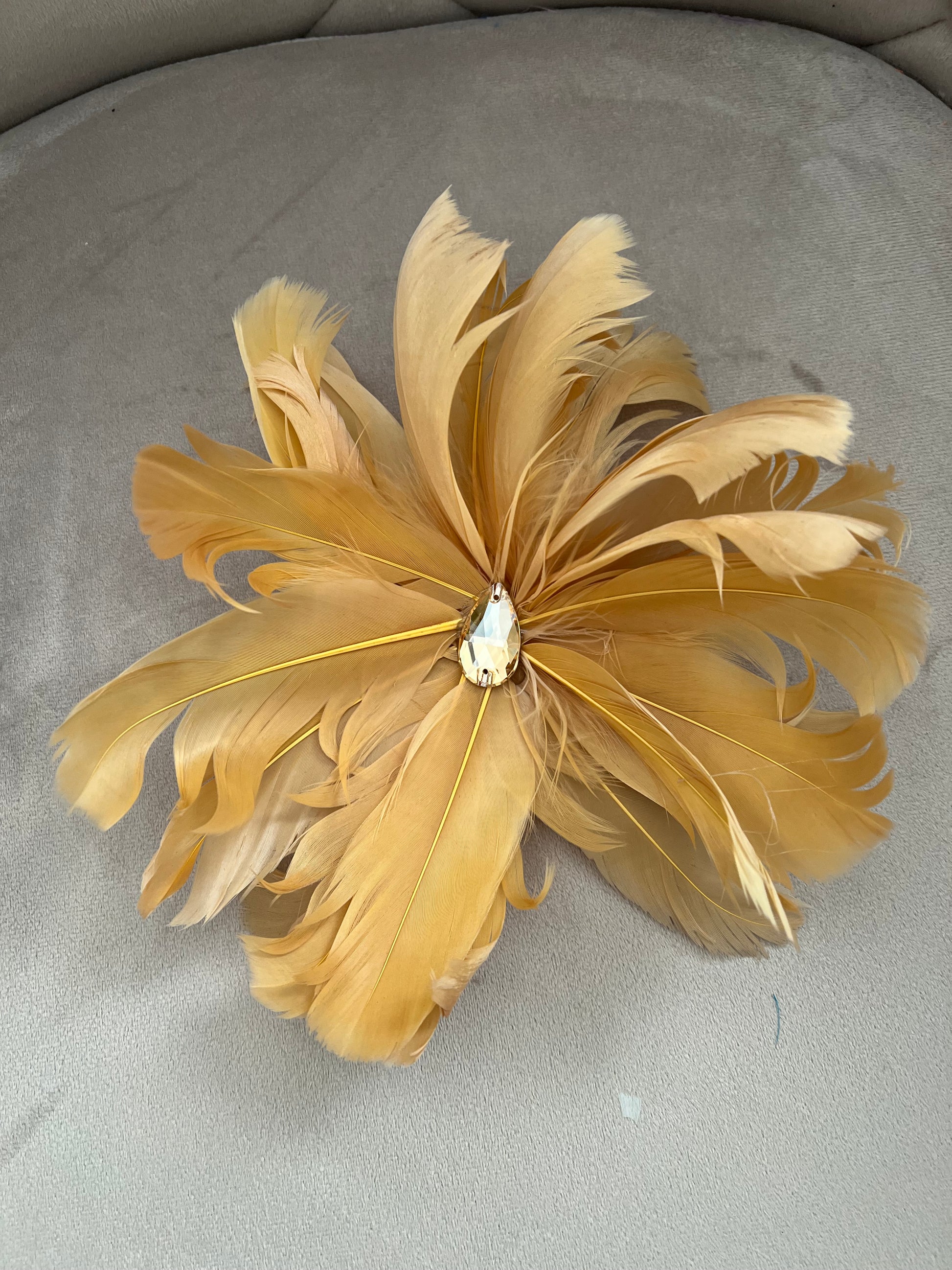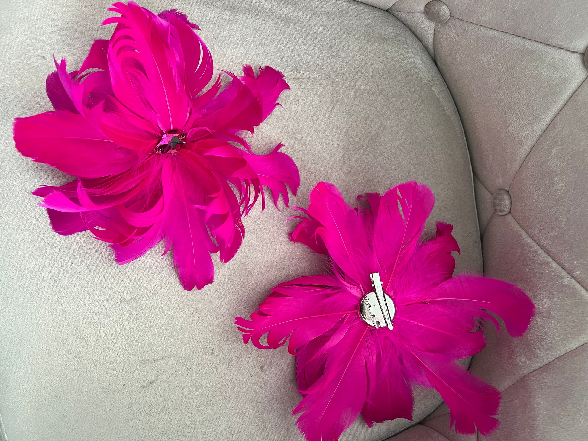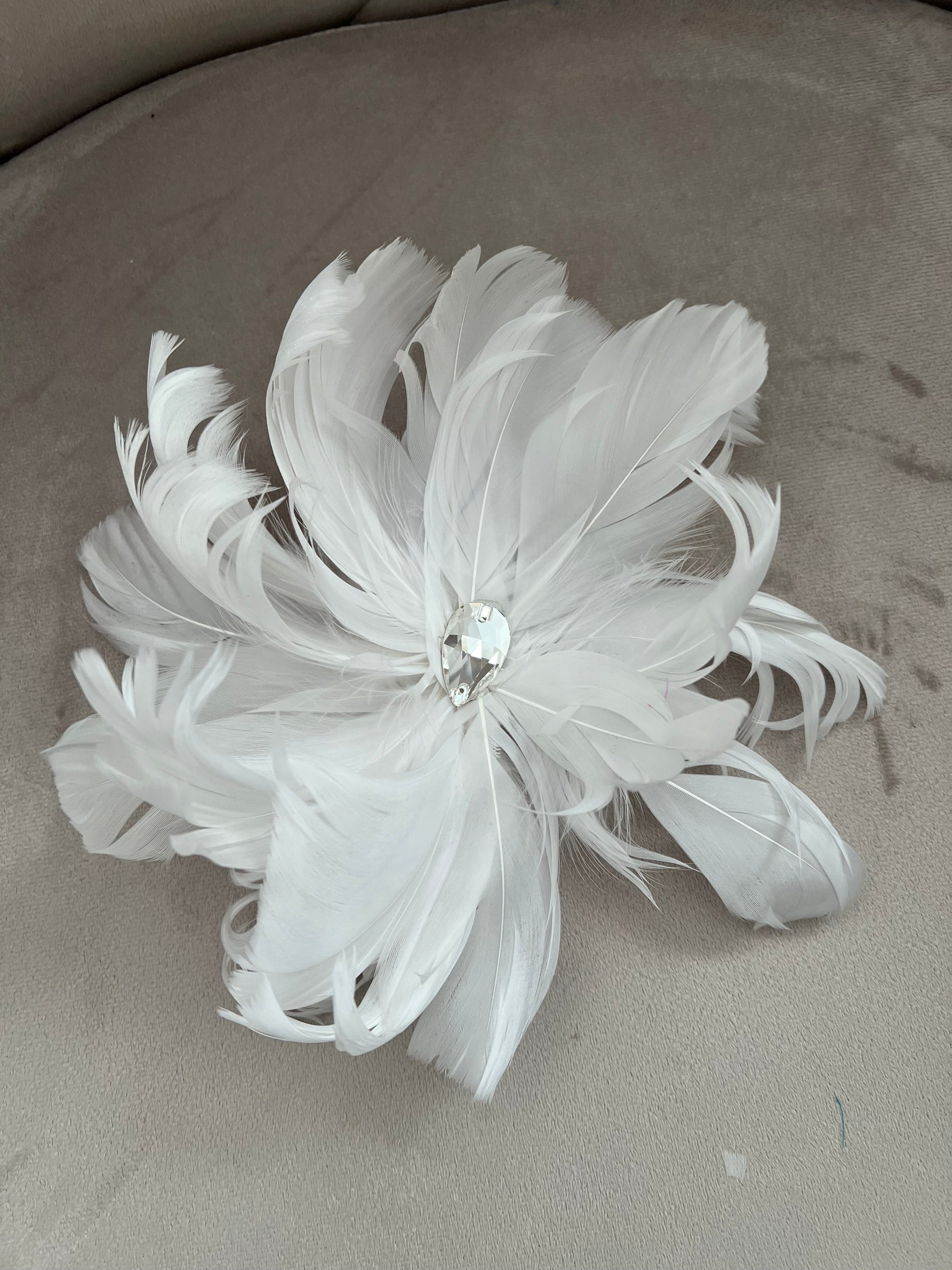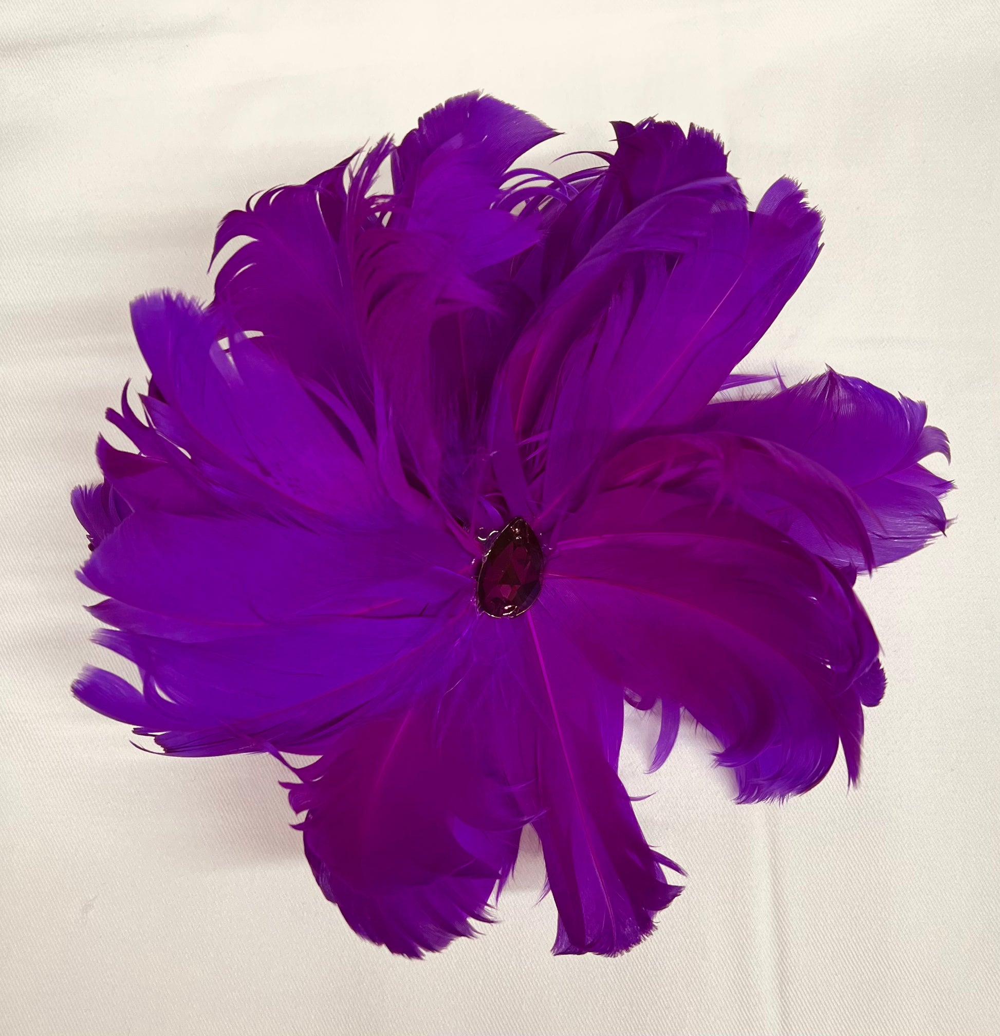 V55 8”x8” Feather Decoration. Pin & clip option on the back. Instant decoration to any Leotard/Costume. 17x28mm top quality pear stone in the centre of the feathers.