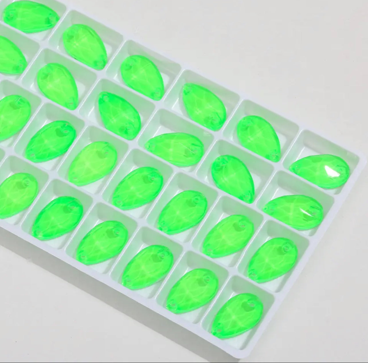 Flo Neon Colour Sew on glass shapes. Suitable for all dance projects & much more.